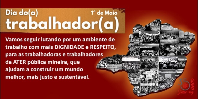 O 1º de maio é mais do que uma data no calendário; é um símbolo de resistência, de luta e de esperança. Neste dia, reforçamos a busca contínua pela valorização das trabalhadoras e trabalhadores da ATER pública mineira, por mais conquistas e por VALORIZAÇÃO, por parte da Empresa e do Governo do Estado. A nossa luta por direitos merece RESPEITO!