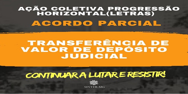 O SINTER vem cumprindo, no menor tempo possível, o que lhe cabe fazer, no que se refere ao cumprimento do acordo parcial das progressões horizontais, homologado no processo da ação coletiva que o Sindicato obteve êxito, e que, portanto, está seguindo os procedimentos a seguir.