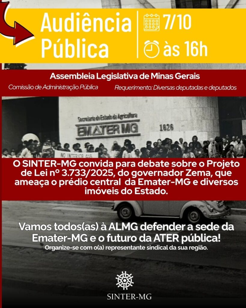 Desde que o governo incluiu o prédio sede da Emater-MG na lista, o SINTER-MG e os trabalhadores vêm se mobilizando para impedir que o patrimônio histórico da Extensão Rural mineira seja usado como moeda de troca.