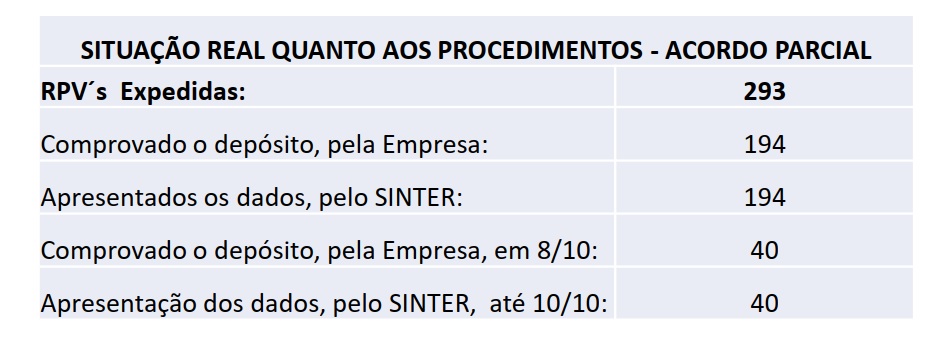 Nessa fase não tem sido diferente. Conforme determinado pelo Juízo, o Sindicato apresenta os dados ao