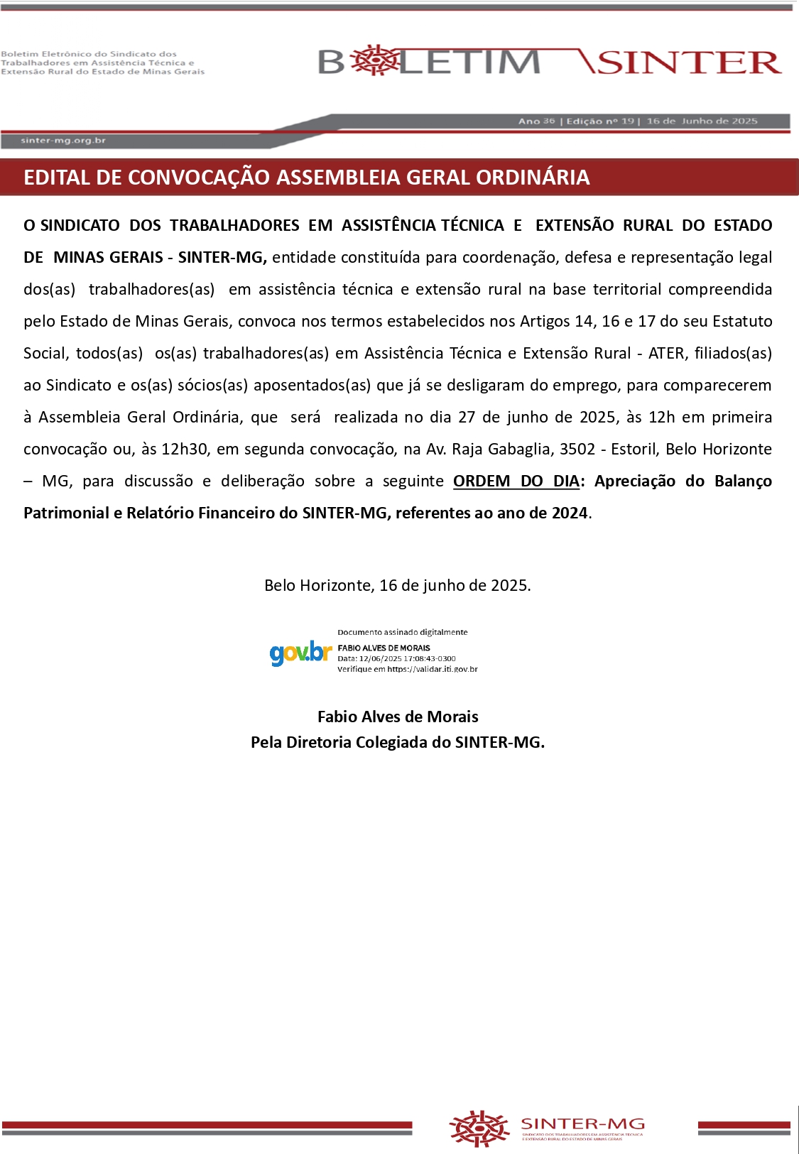 Edital de Convocação Assembleia Geral Ordinária