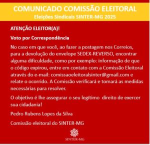 CONTATO DA COMISSÃO ELEITORAL: comissaoeleitoralsinter@gmail.com