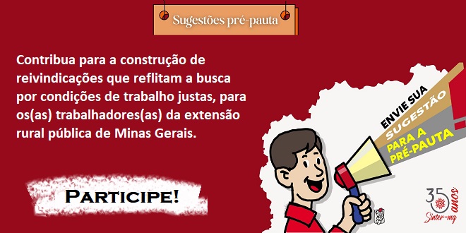 Participe da construção da pauta de reivindicações para as negociações coletivas 2025. Faça parte da luta por condições de trabalho justas e necessárias para as trabalhadoras e trabalhadores da extensão rural pública mineira.