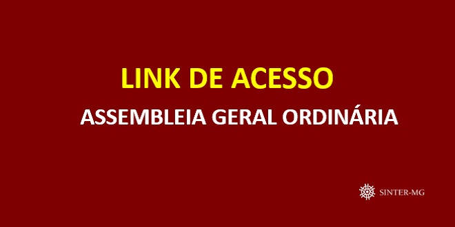Link para acesso à Assembleia Geral Ordinária, que será realizada no dia 21 de junho de 2024, às 12h em primeira convocação ou, às 12h30, em segunda convocação, via videoconferência, para discussão e deliberação sobre a seguinte ORDEM DO DIA: Apreciação do Balanço Patrimonial e Relatório Financeiro do SINTER-MG, referentes ao ano de 2023.