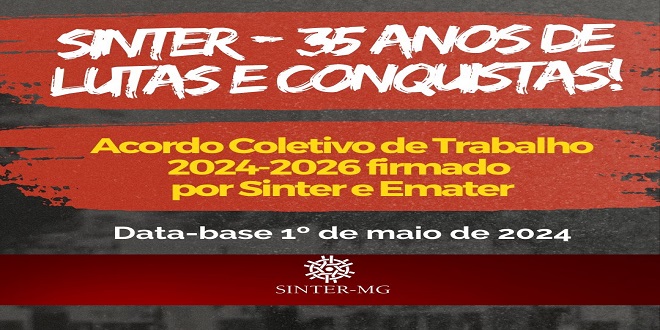 Em reunião de mediação, ocorrida hoje, 11/9, no Ministério do Trabalho e Emprego, o Acordo Coletivo de Trabalho – ACT 2024/2026, firmado por Sinter e Emater, que fora apresentado previamente pelo Sindicato, teve a confirmação, pelas partes, do pactuado.