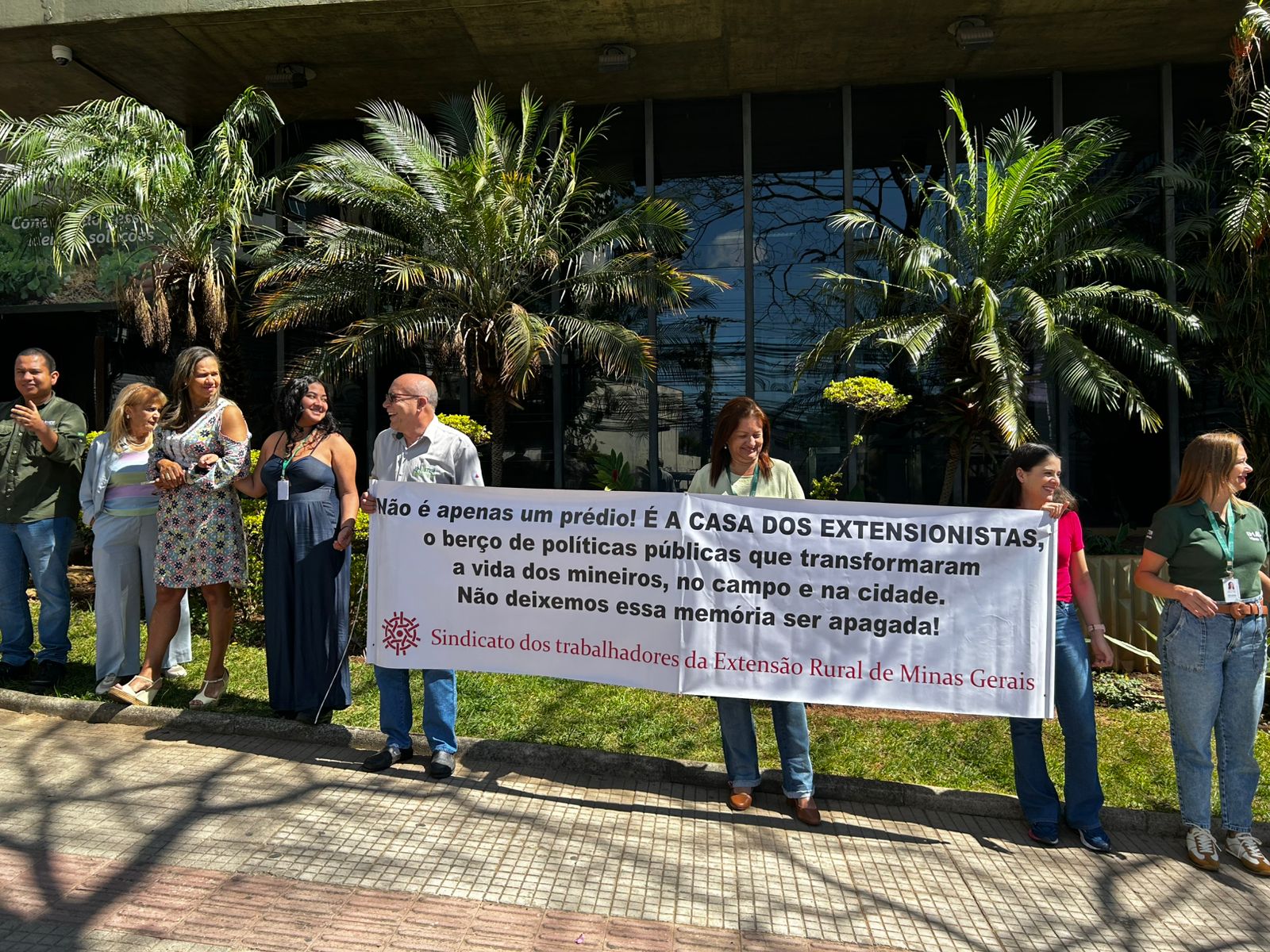 No ultimo dia 26/8, foi agendada visita de técnicos de órgão federal ao prédio da Emater-MG, momento em que a categoria, organizada pelo SINTER, fez novo ato de mobilização para defender que o prédio central seja preservado, em respeito à sua história e ao papel estratégico que desempenha para a soberania alimentar e desenvolvimento do Estado. Para tal ato foram convidados deputadas e deputados para endossar a manifestação.