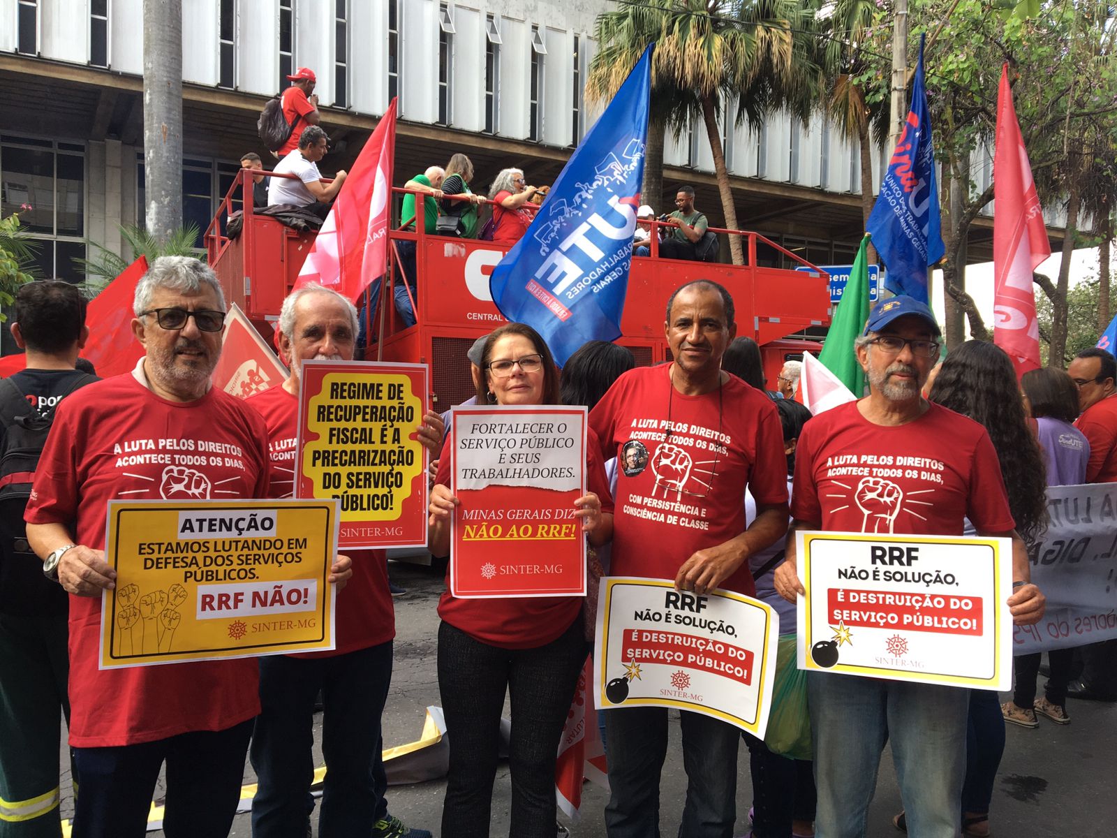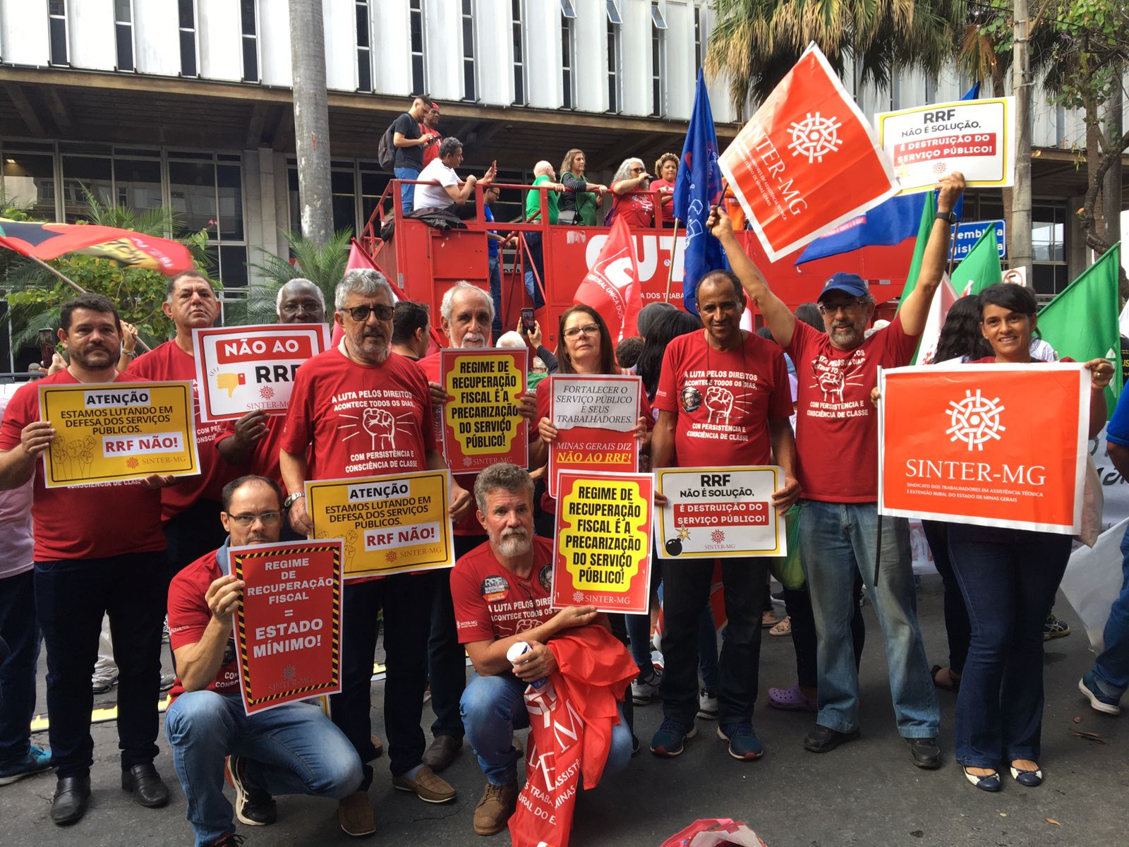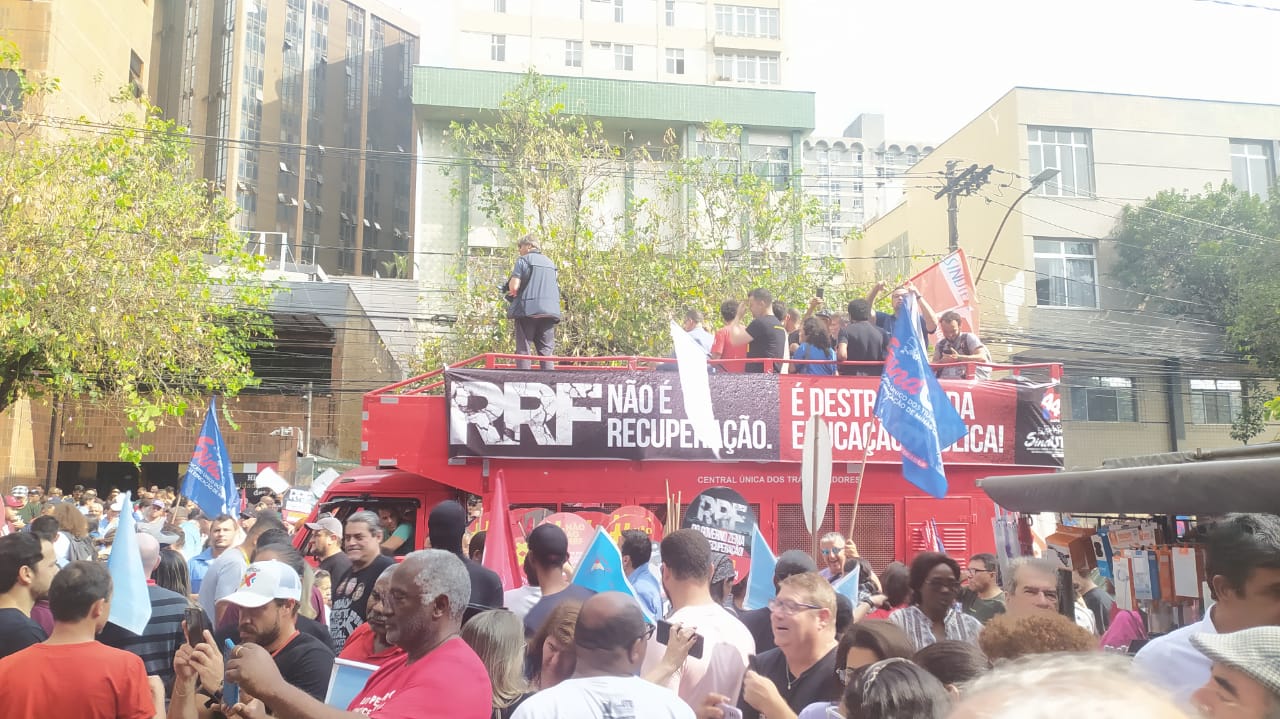 O Dia Estadual de Luta em defesa do serviço público contou com uma grande manifestação na Assembleia Legislativa (ALMG) e marcha passando pela sede Cemig, com encerramento na Praça 7, aproveitando a oportunidade para conversar com a população e esclarecer sobre os efeitos maléficos do RRF.